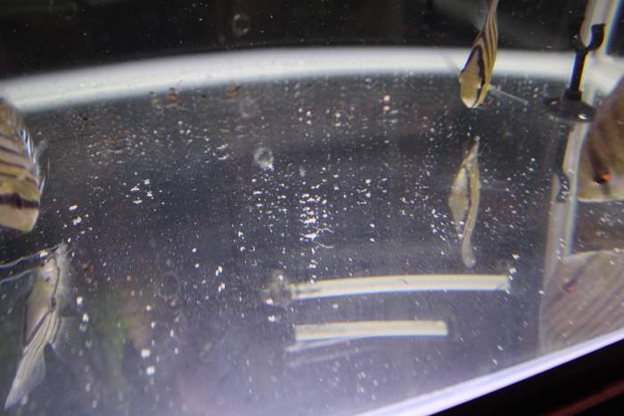 確かにホースを入れた直後はスッと置くに引っ込んでしまった個体もいるのですが、1匹などは全く動じずに前面で悠々と泳いでいましたし、しばらくするとホースがまだ水槽に入っているのに前面に出てくる個体もいるほどなんです。