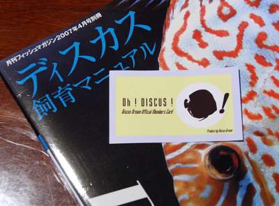 ちなみに上の写真は最近購入したディスカスの飼育本「ディスカス飼育マニュアル(フッシュマガジン07年4月号別冊)」とDiscusDreamの会員カードです。