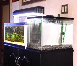ただオトシン水槽は少しでも水量を稼ぎたくてハイタイプにしたわけですし、コリ水槽の方は(電気代の都合で)少しでも水量を少なくしたかったので、結局はこういう結果にならざるを得ないわけなんですけどね。