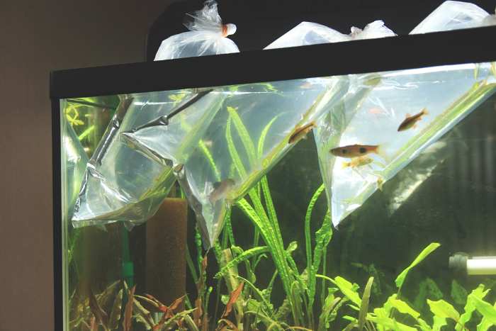 コリ水槽はやりたい作業があってコリの袋が3袋も浮かんでいると邪魔なのでこの水槽で水温だけ合わせている所です。