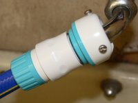 それと浄水器に繋いだ10mのホースですが写真(右)のようにワンタッチで外れるようにしておきました。