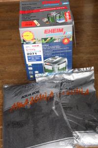 写真は前回の日記で書いた「買ってきた物」で、私にとって初となるエーハイムのプロフェッショナルシリーズ(外部フィルター)とADAのアマゾニアになります。