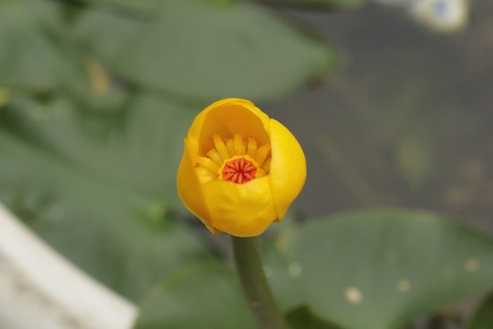 屋外の睡蓮鉢で栽培している植物が咲いてくれました。