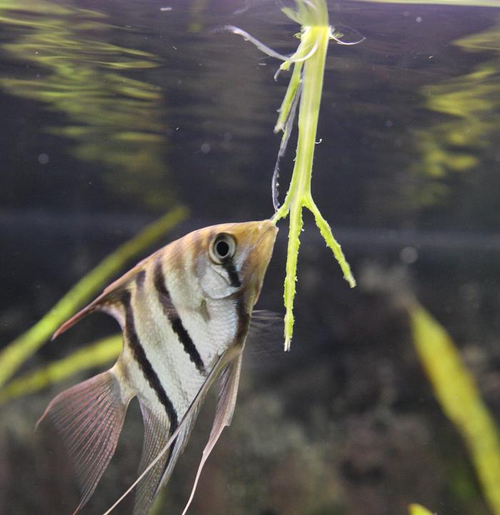 次はダメ元でエンゼルの水槽に放り込んだのですが、半日で下の写真のようになっていました。