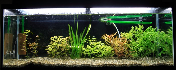 さて植えている水草は向かって右からウォータースプライト、アマニア・グラキリス、ハイグロ・ポリスぺルマ、バリスネリア、ルドヴィジアとなっています。